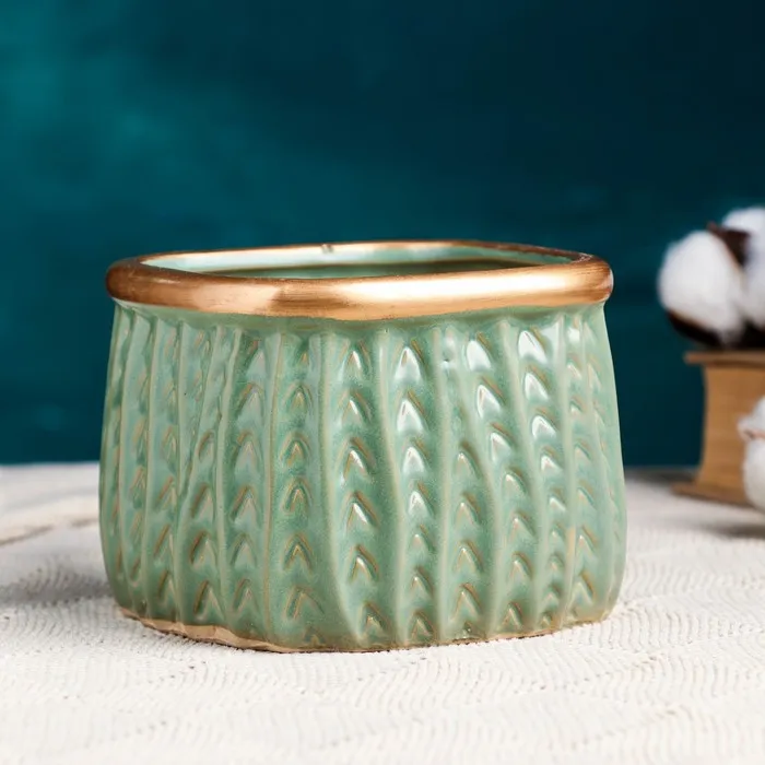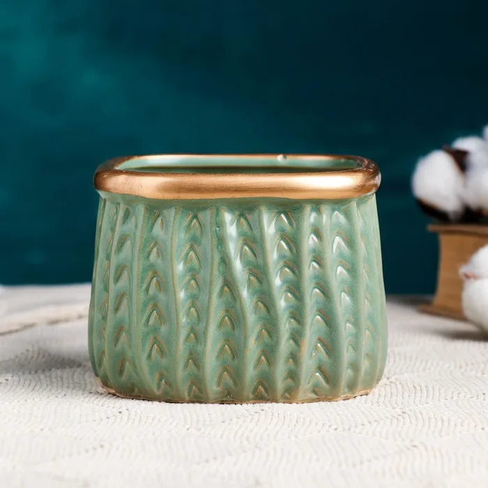Горшок для цветов «Элегия» керамический, 600 мл, 12×9 см, d=9.5 см, зелёный
