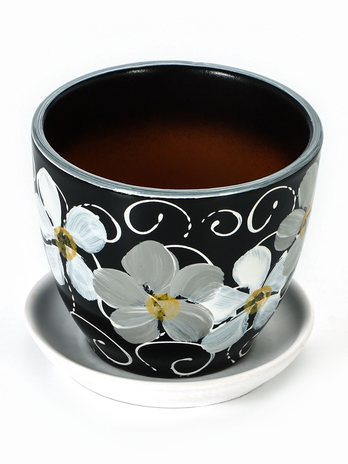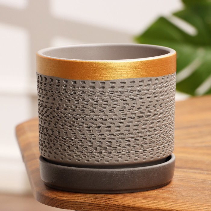 Горшок для цветов «Фиалка», 1 л, d=15 см, h=13 см, керамический, с поддоном — Характеристики