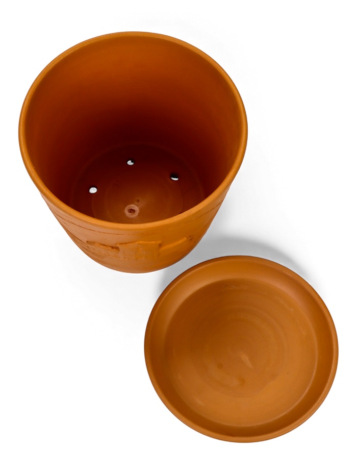 - Натуральная керамика: материал пропускает воздух, помогая корням дышать, и естественным образом регулирует влажность почвы. Горшок получается устойчивым и рассчитан на долгое использование.