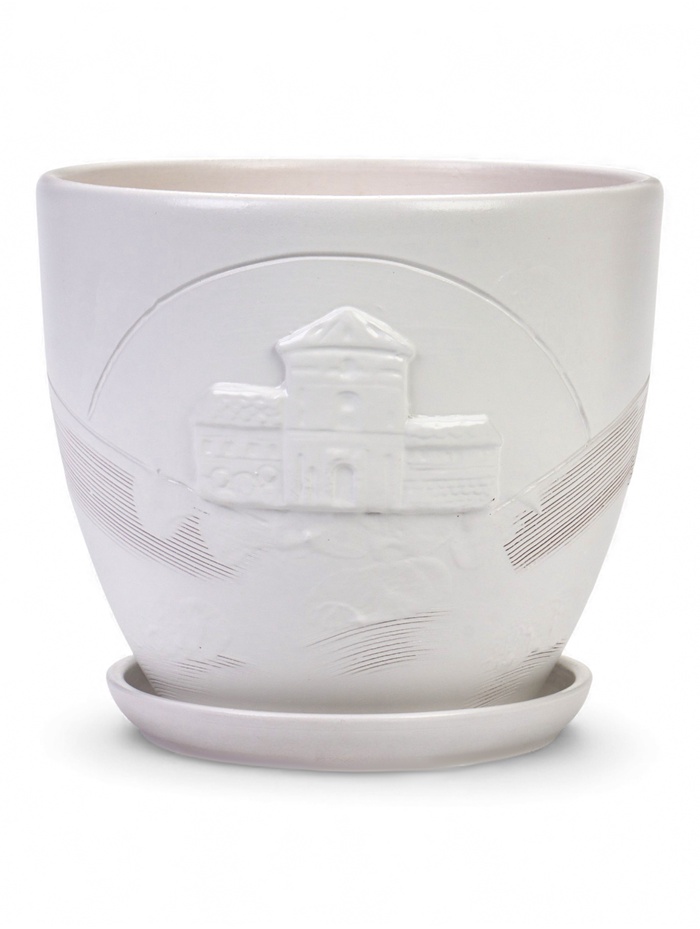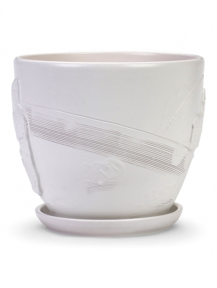 Керамический горшок с поддоном «Голландия», 5 л, белый — это настольная модель с рельефным декором. Его классический цвет и вместительный объём создают солидный и универсальный образ для крупных комнатных растений.