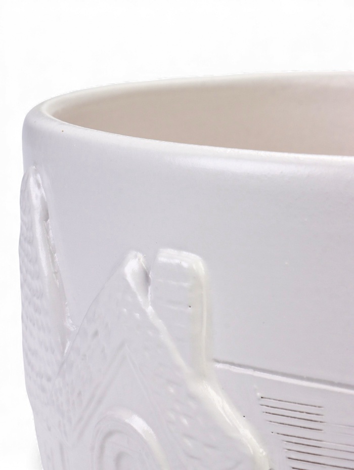 - Дизайн с рельефным узором: характерный объёмный узор напоминает о традициях гончарного искусства. Он придаёт гладкой керамике особую фактурность и делает горшок узнаваемым.