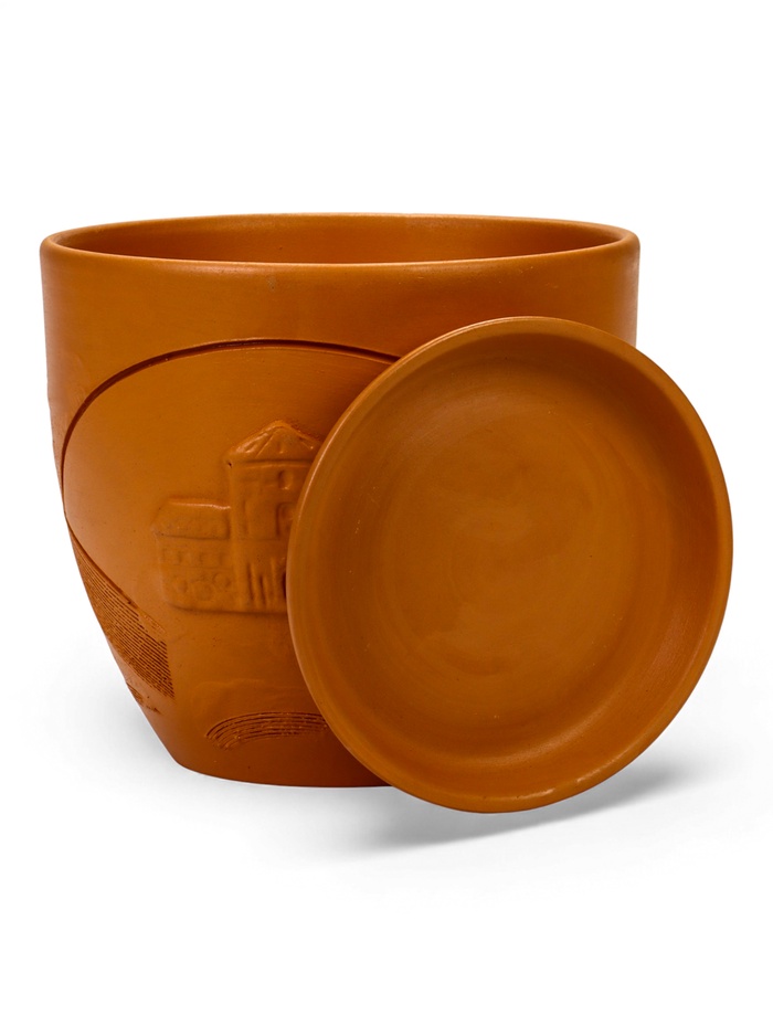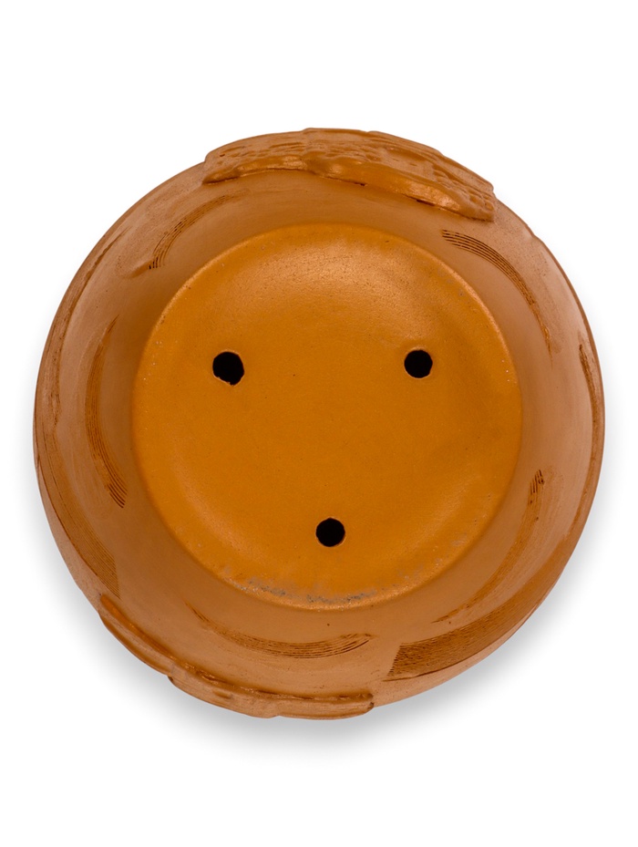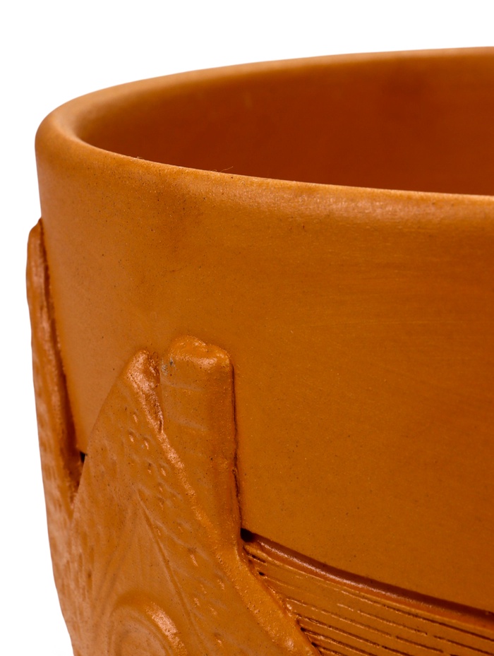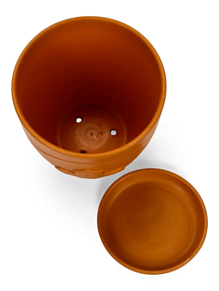 - Дизайн с классическим рельефом: характерный объёмный узор напоминает о традициях гончарного искусства. Он придаёт гладкой керамике особую фактурность и делает горшок узнаваемым.
