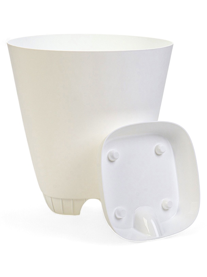 Белый пластиковый горшок для цветов «Гранд» максимального объема с системой прикорневого полива. Профессиональное решение для крупных комнатных растений. Объем 28 литров, диаметр 37 см, высота 38 см. В комплекте съемный поддон.