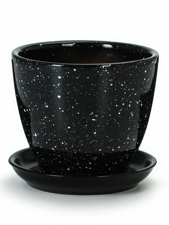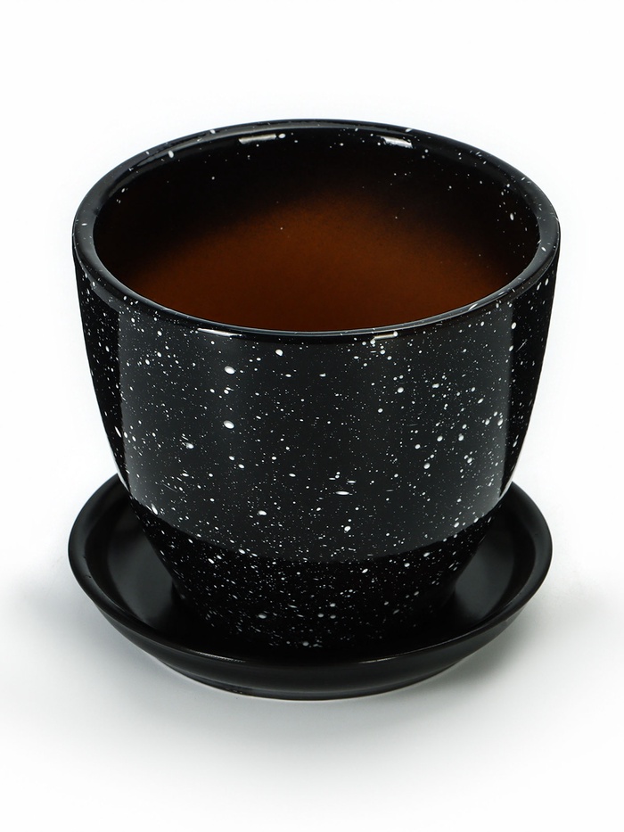Горшок для цветов «Гранит », 1 л, d=15 см, h=13 см, керамика, с поддоном, чёрный — Характеристики