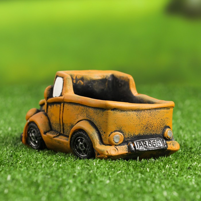 - Узнаваемая форма: силуэт грузовика создаёт сюжетную композицию. Растение в таком горшке становится центральным элементом декора.