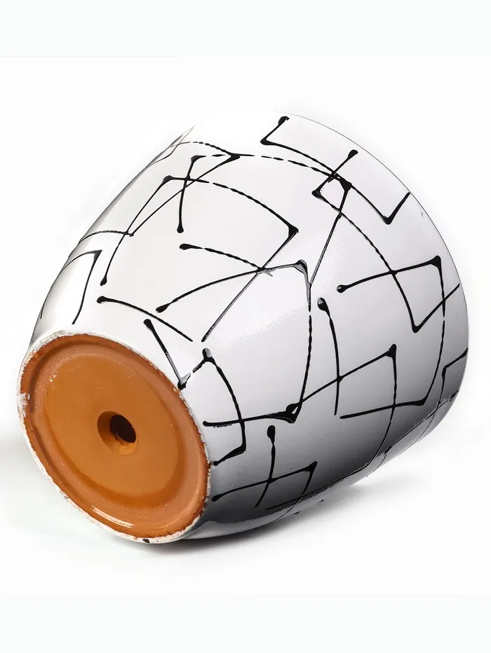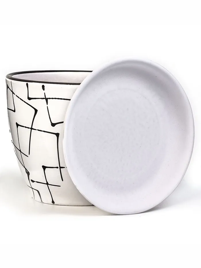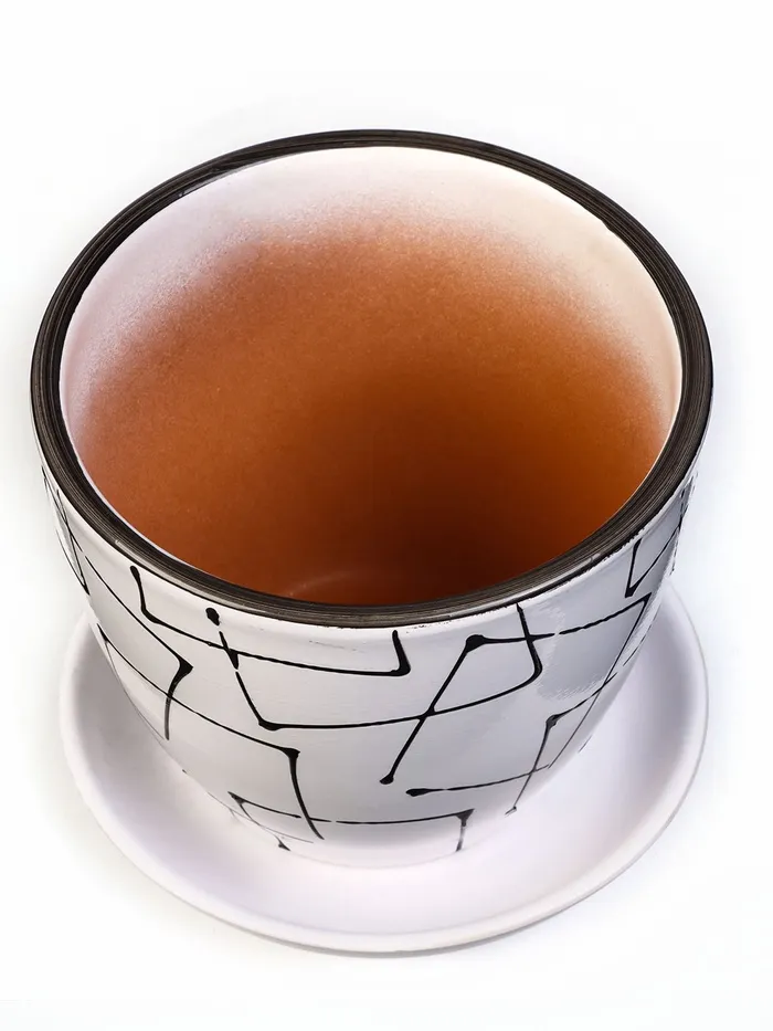 Горшок для цветов «Иллюзия», керамический, с поддоном, 1 л, белый с геометрическим орнаментом — Характеристики
