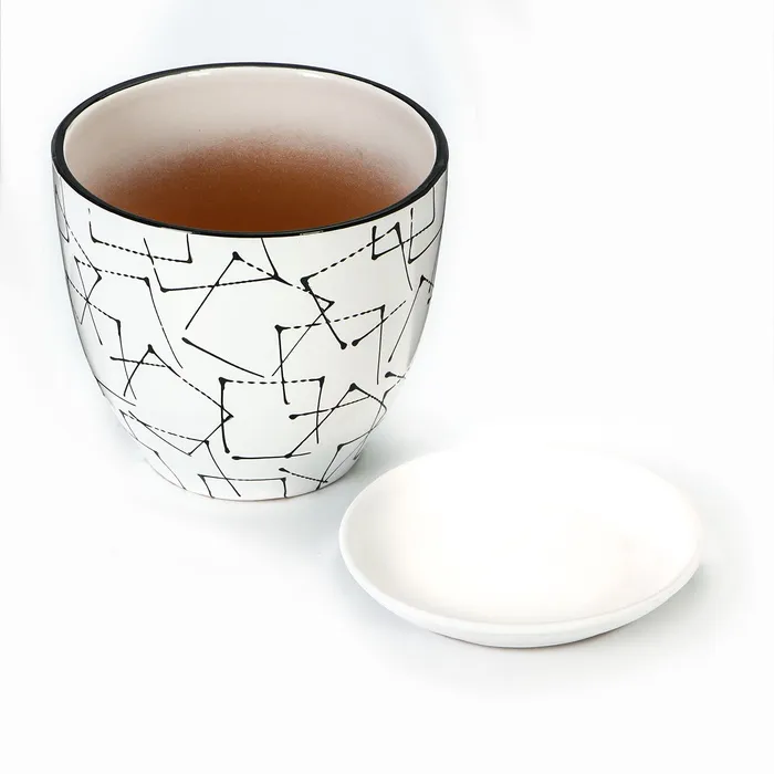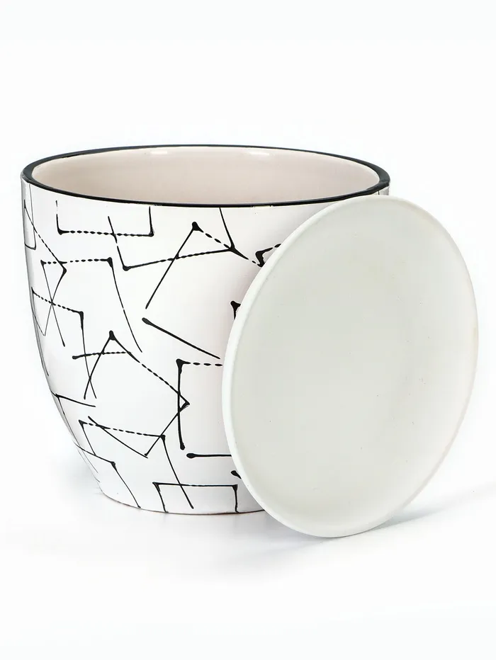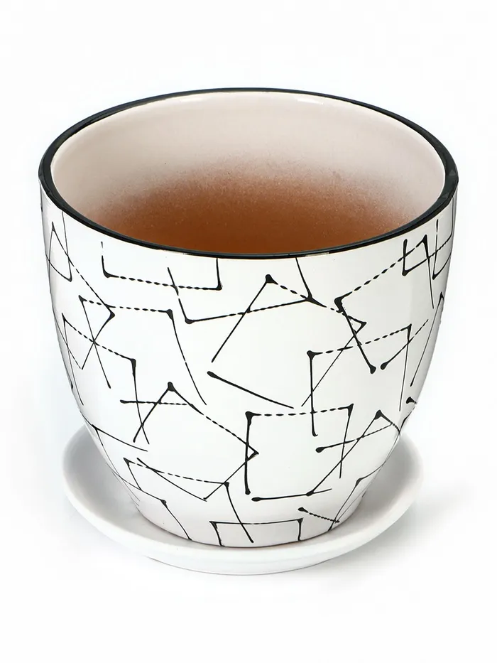 Горшок для цветов «Иллюзия», керамический, с поддоном, 5 л, белый с геометрическим орнаментом — Характеристики