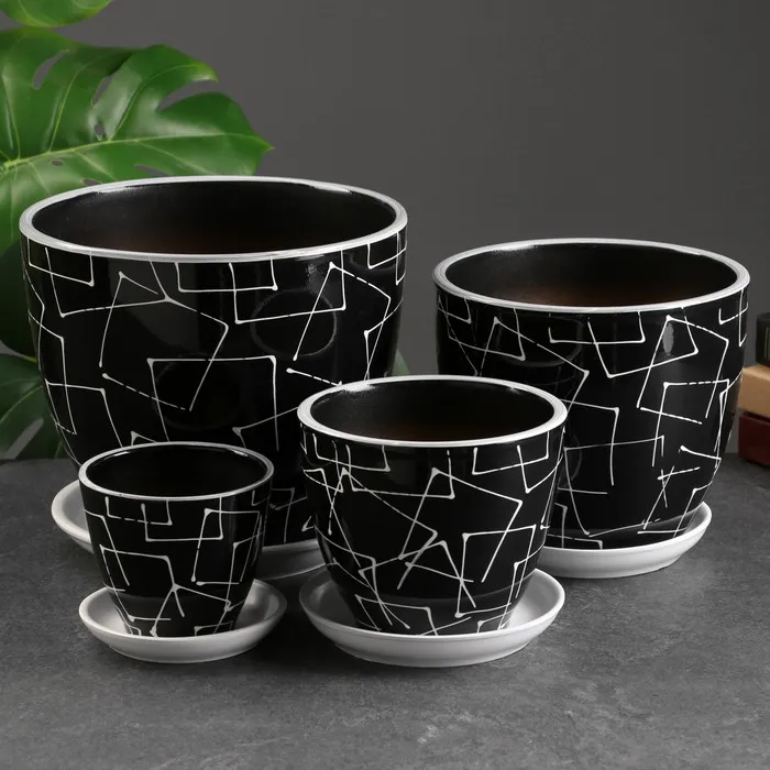 Горшок для цветов «Иллюзия», керамика, с поддоном, набор 4 шт.: 400 мл, 1 л, 2.5 л, 5 л — Характеристики