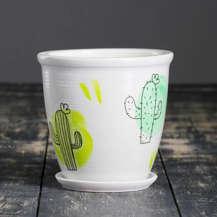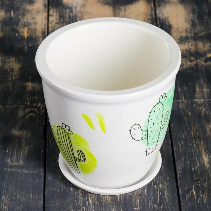 Горшок для цветов «Кактус: № 2», керамический, 700 мл, d=12 см, МИКС — Характеристики