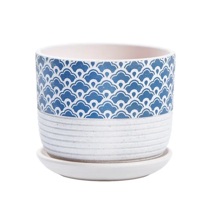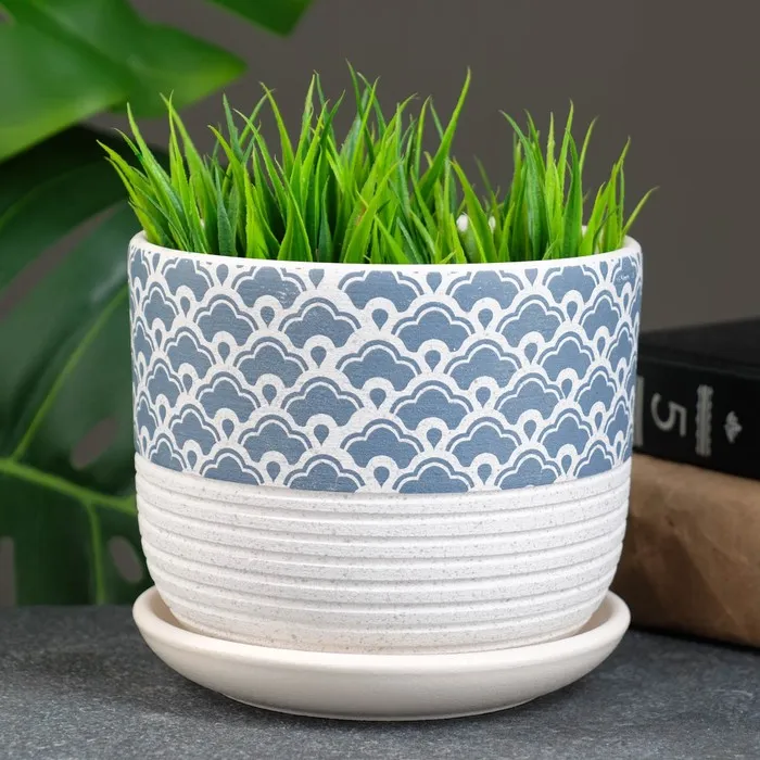 Горшок для цветов «Хоккайдо», керамический, с поддоном, 700 мл, белый с голубым орнаментом — Характеристики