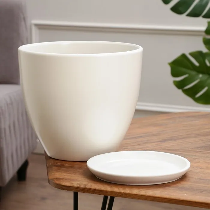 Горшок для цветов «Колор гейм», керамический, с поддоном, 8.9 л, белый — Характеристики