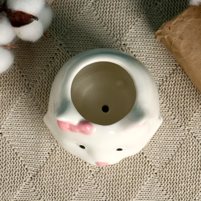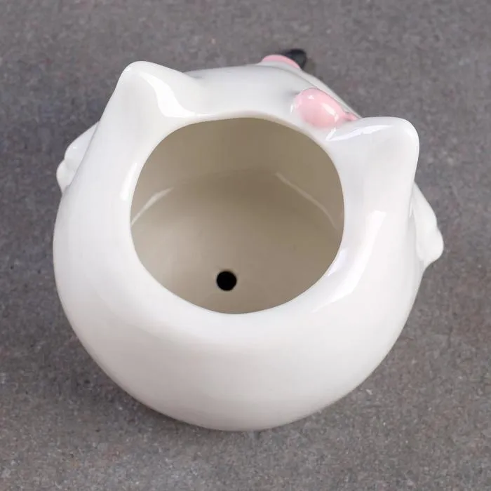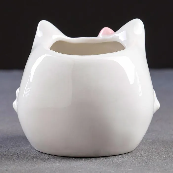 Горшок для цветов «Кошка с бантиком» керамический, 200 мл, 10×8 см, белый — Характеристики