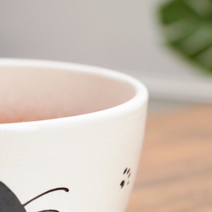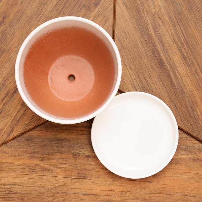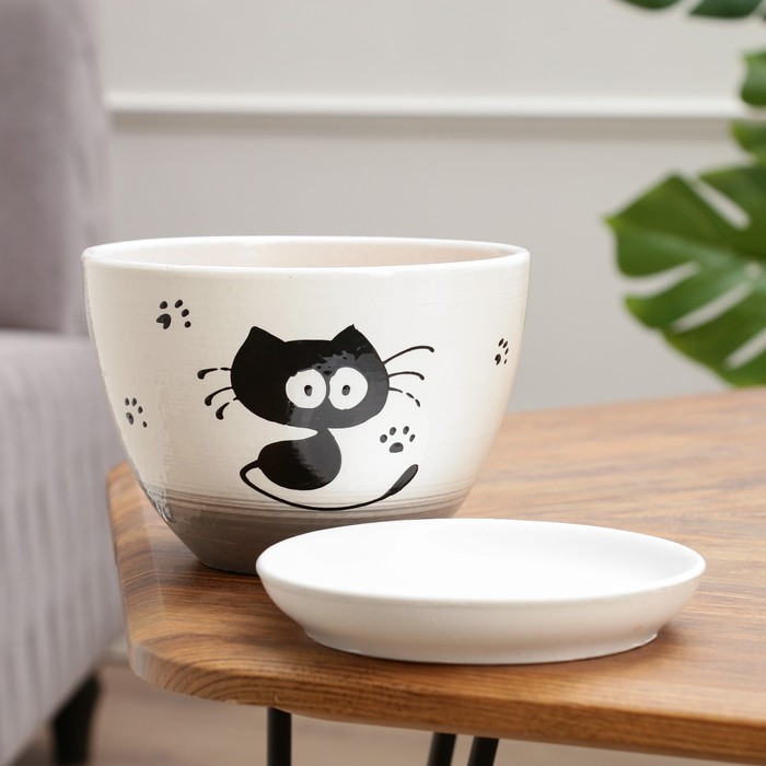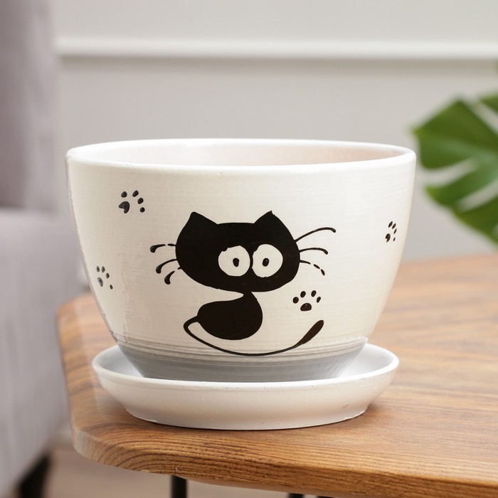 Горшок для цветов «Кот», 1.65 л, d=17 см, h=13 см, керамика, с поддоном, белый — Характеристики