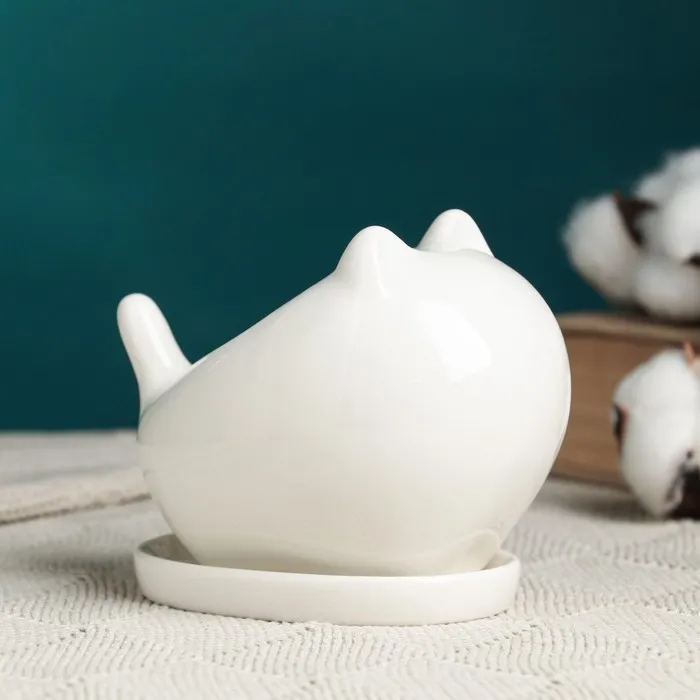 Горшок для цветов «Котик» керамический, 250 мл, 11×5×8.5 см, белый — Характеристики