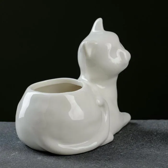 Горшок для цветов «Котёнок», керамический, 150 мл, 13×10.5×12.5 см, белый — Характеристики