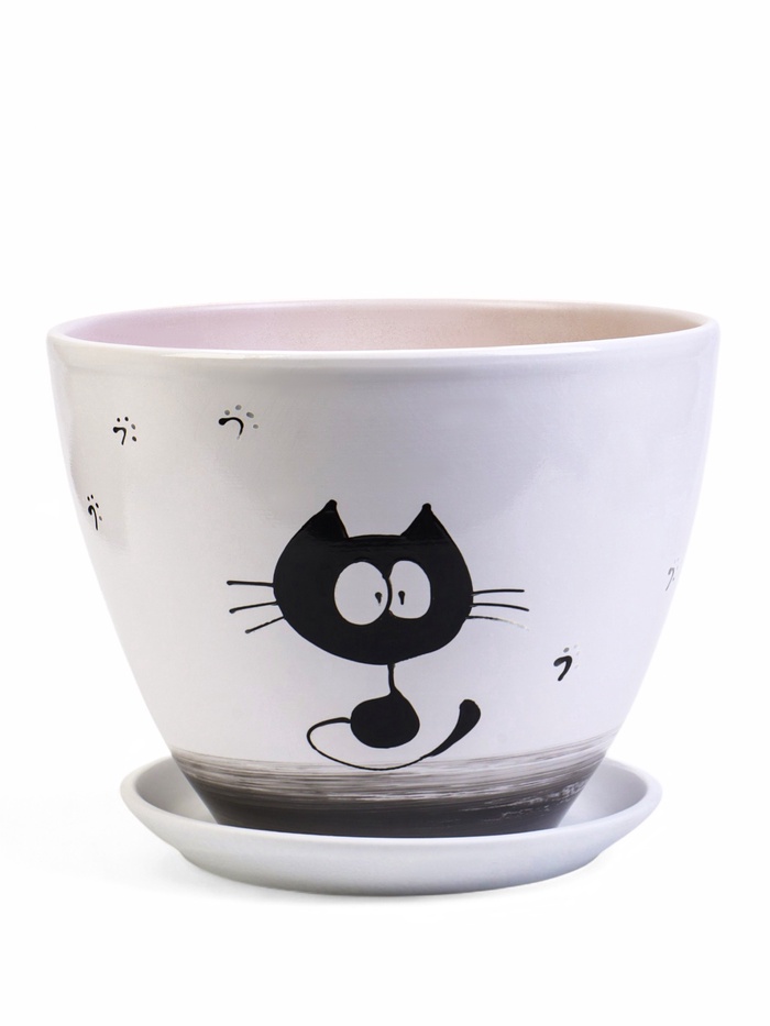 Горшок для цветов «Котофей», 8 л, d=29.5 см, h=23 см, керамика, с поддоном, белый — Характеристики