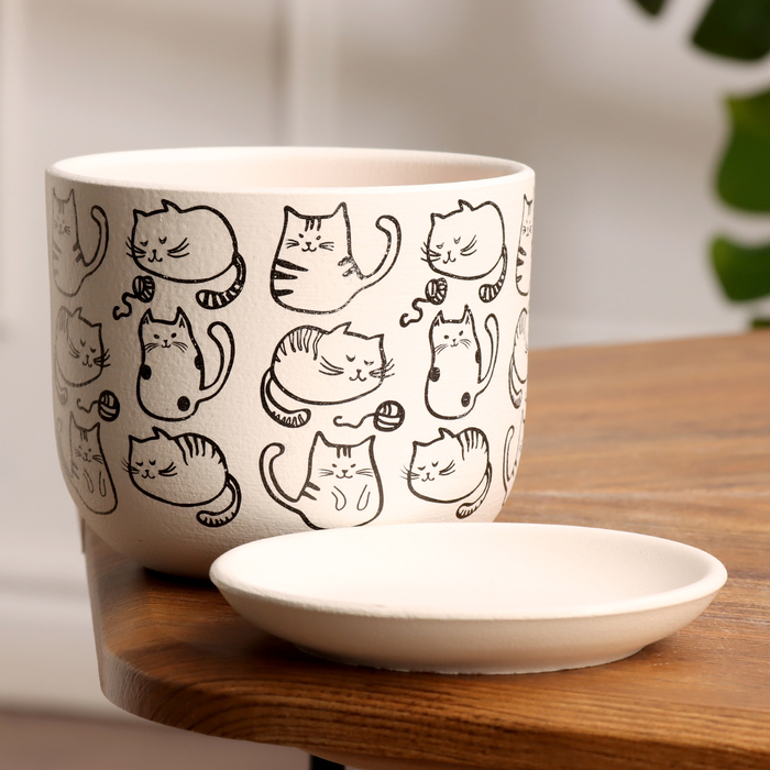 Керамический горшок для цветов «Коты», 800 мл, с поддоном — это стильный и практичный домик для вашего комнатного растения. Лаконичный белый цвет и очаровательный рисунок делают его самостоятельным элементом декора, который гармонично впишется в интерьер.