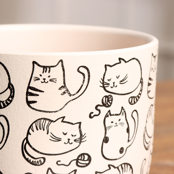 Горшок для цветов «Коты», 800 мл, d=12 см, h=10 см, керамический, с поддоном, белый — Характеристики