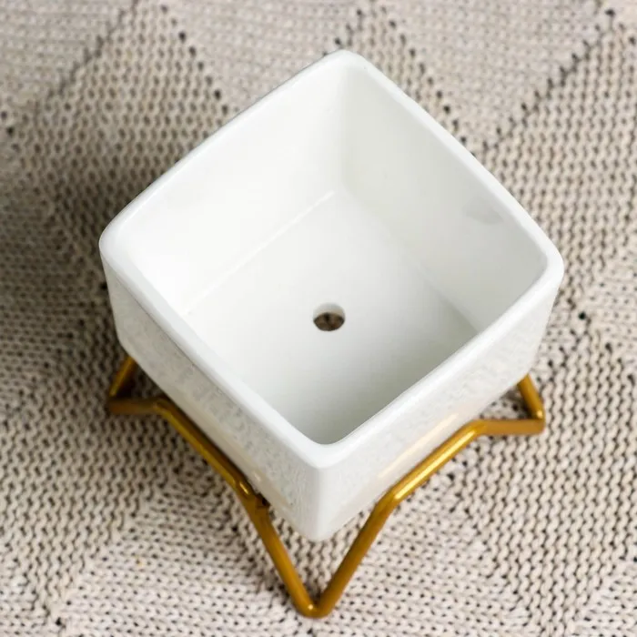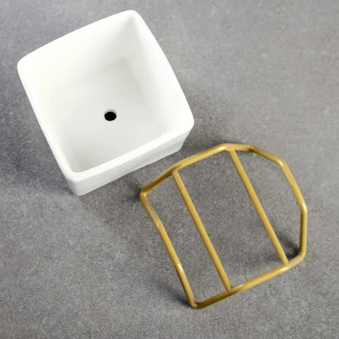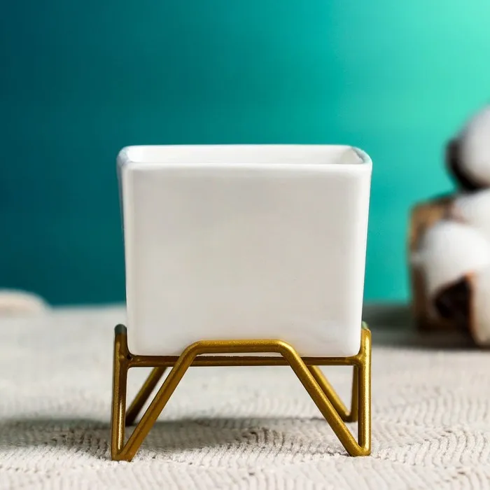 Горшок для цветов «Куб» керамический, 120 мл, 7×7 см, белый, на металлической золотистой подставке — Характеристики