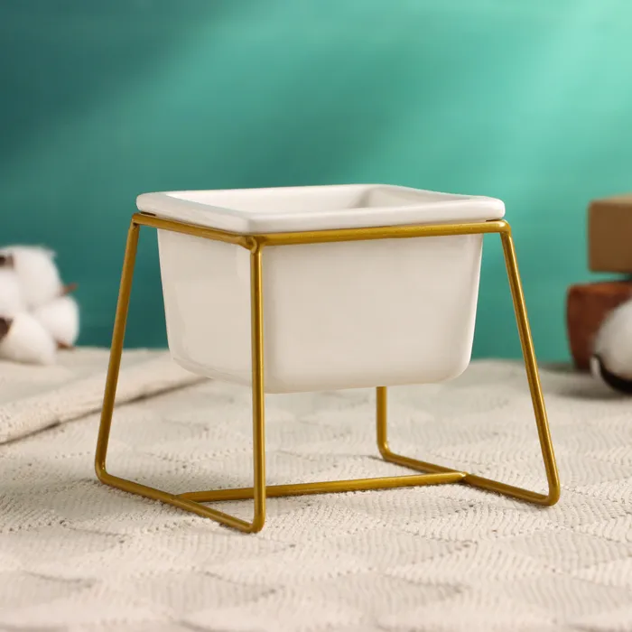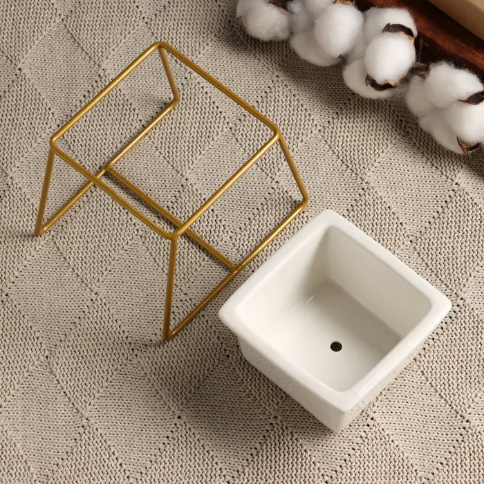 Горшок для цветов «Куб» керамический, 150 мл, 12×9×9 см, на золотистой металлической подставке, белый — Характеристики