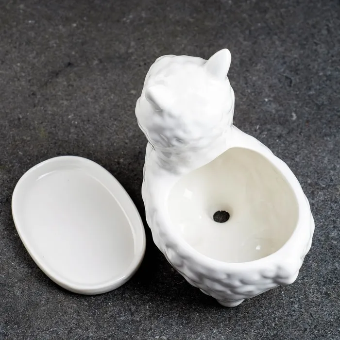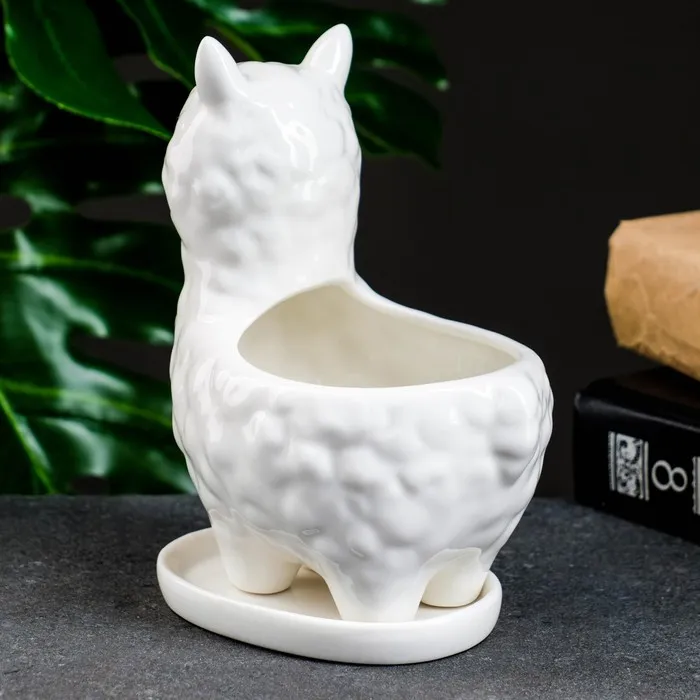 Горшок для цветов «Лама Лёля», керамический, 200 мл, 15×8×12 см, с поддоном, белый — Характеристики