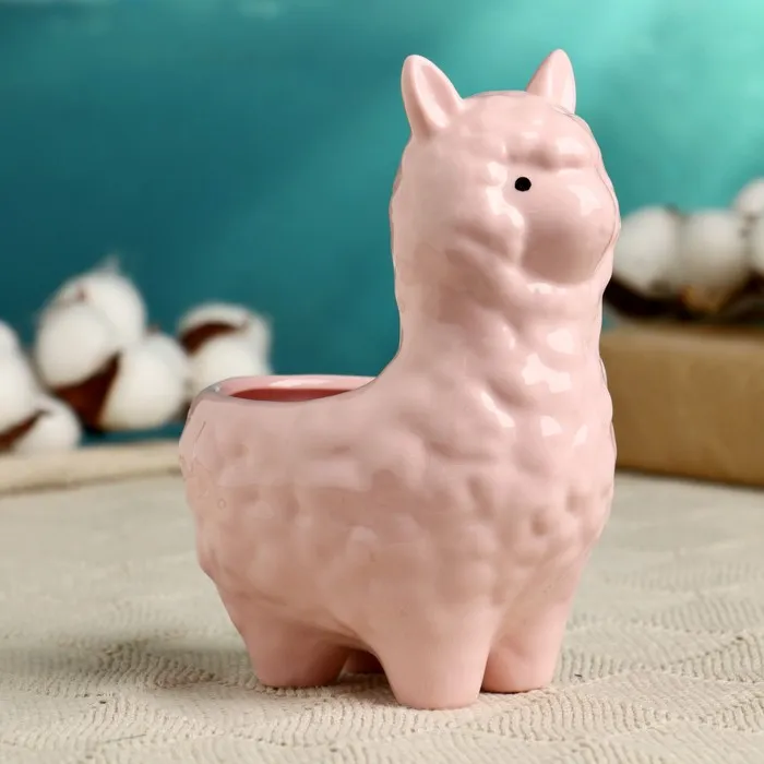 Горшок для цветов «Лама Лёля», керамический, 250 мл, 15×8×12 см, розовый — Характеристики