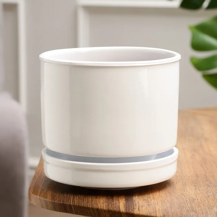 - Продуманный дизайн с поддоном: горшок комплектуется практичным поддоном, который надёжно защищает поверхности от излишков воды после полива.