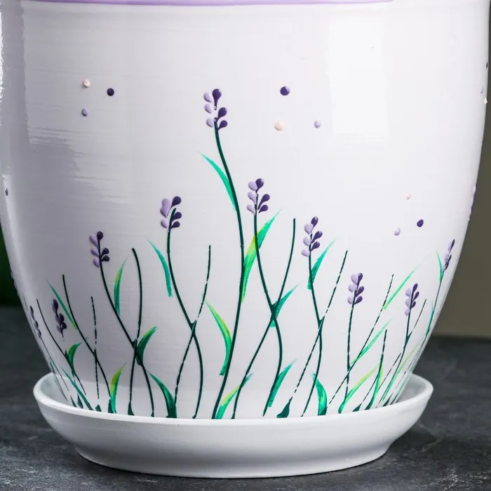 Горшок для цветов «Лаванда», керамический, с поддоном, 2.5 л, белый — Характеристики