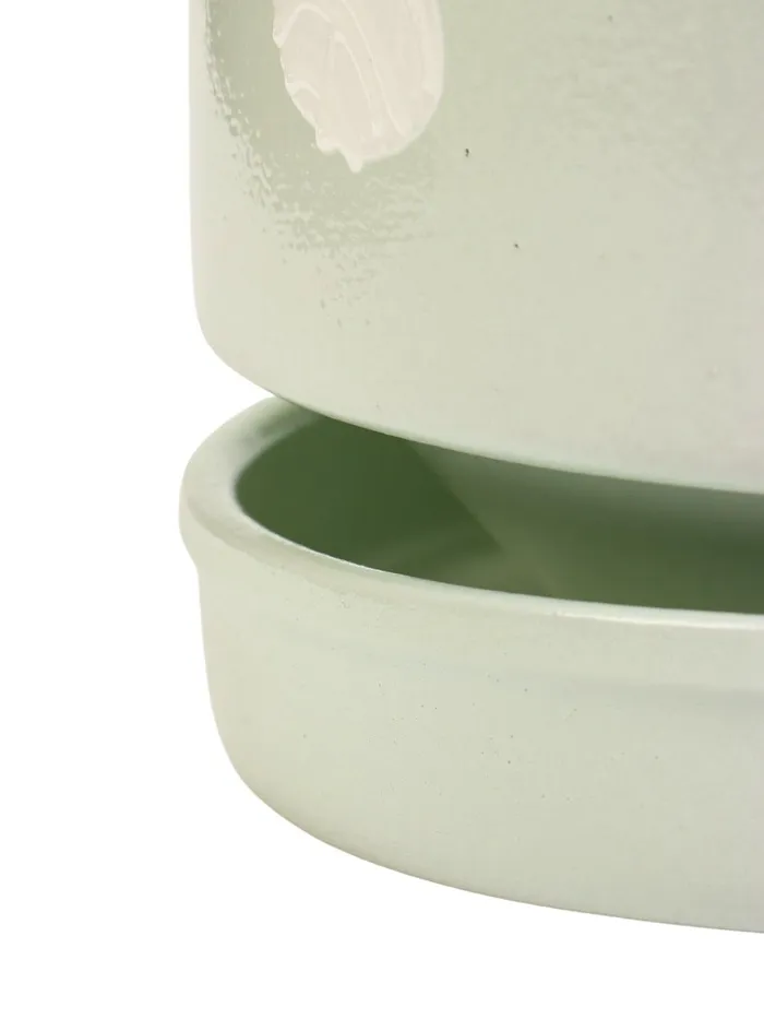 - Спокойный зеленый тон: приглушенный оттенок создает гармоничный фон для листвы, не конкурируя с ее окраской. Целостное цветовое решение подходит для современных интерьеров в скандинавском или эко-стиле.