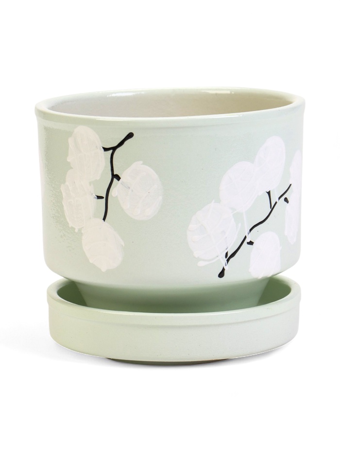 Керамический горшок «Листья» с поддоном — это изящное решение для самых маленьких растений. Нежный рисунок ветви создает эффект лаконичной эстетики, подчеркивая хрупкую красоту миниатюрных композиций.