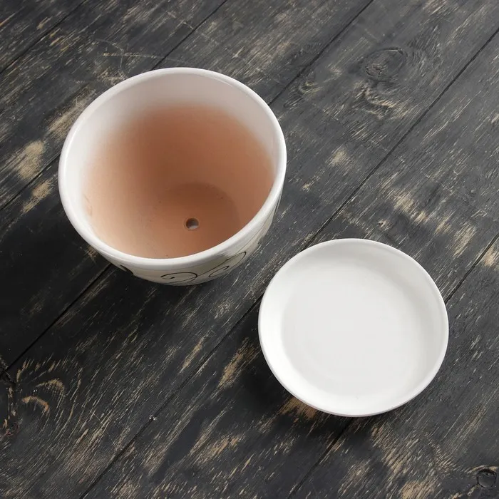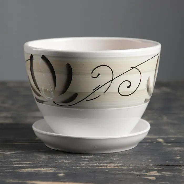 Горшок для цветов «Лотос», керамический, с поддоном, 1.45 л, белый с зелёными полосками — Характеристики