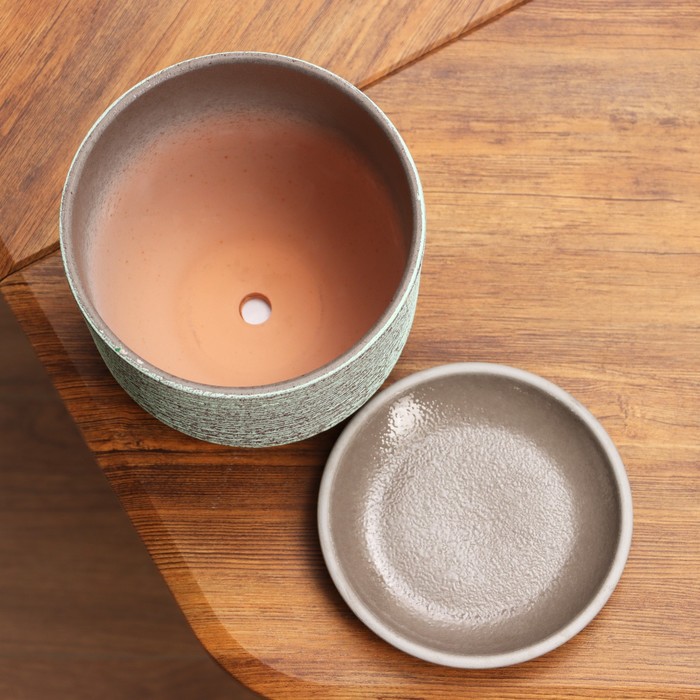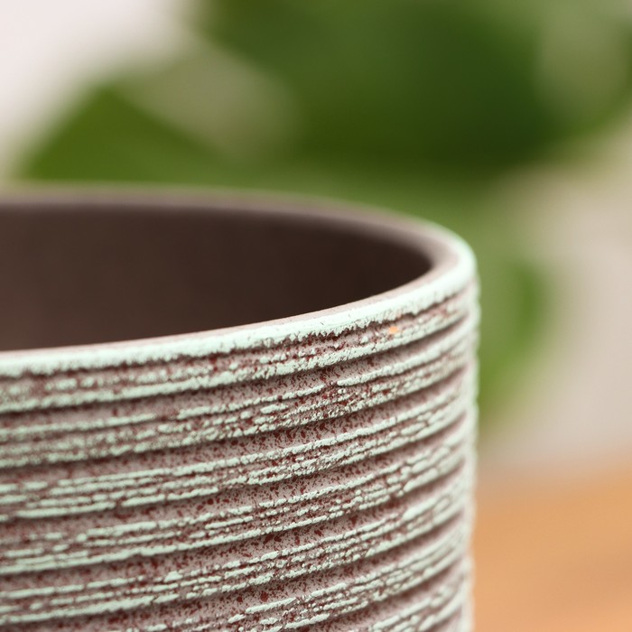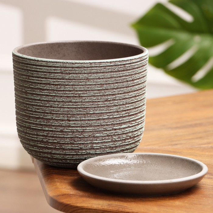 Горшок для цветов «Лоза», 1.6 л, d=15.5 см, h=12.5 см, керамический, с поддоном, серый, зелёный — Характеристики