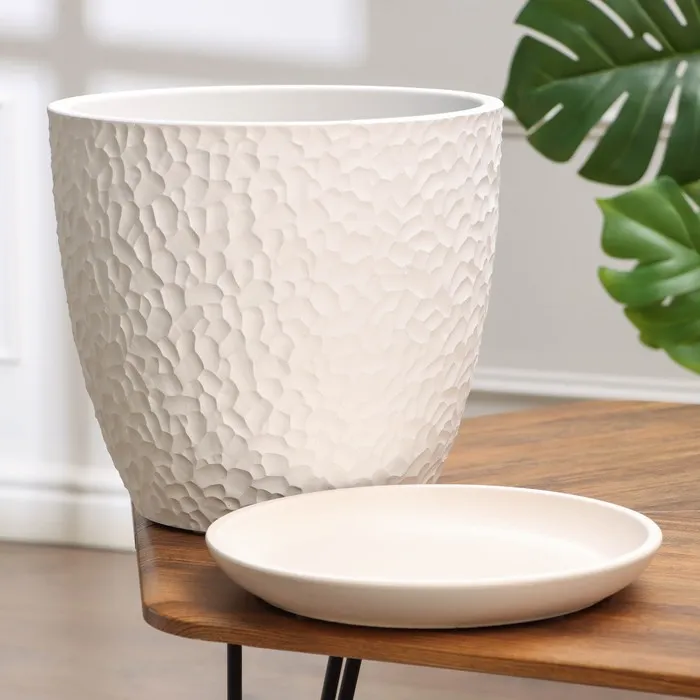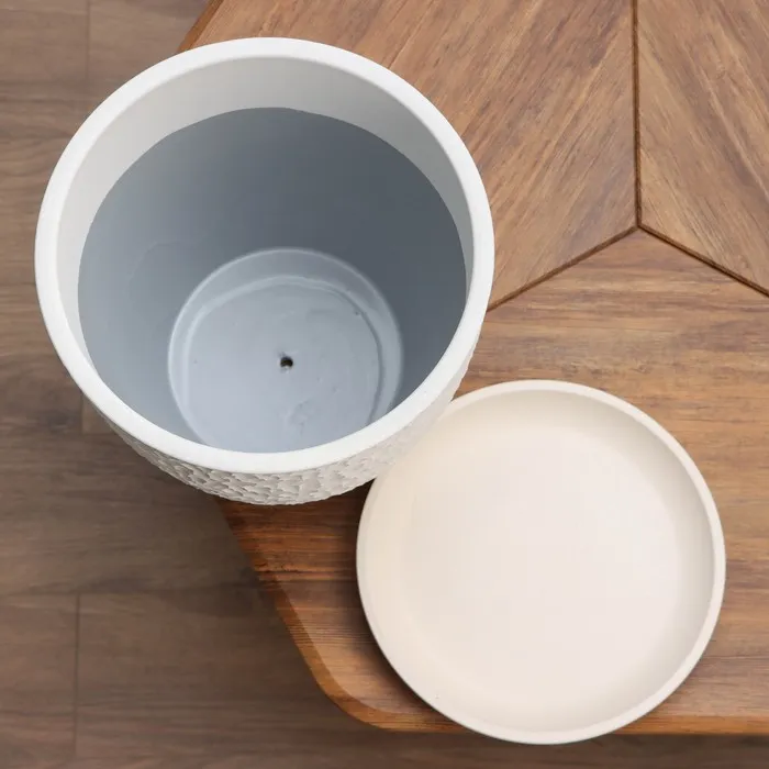 Горшок для цветов с поддоном «Камешки», 1.6 л, пластиковый, белый
