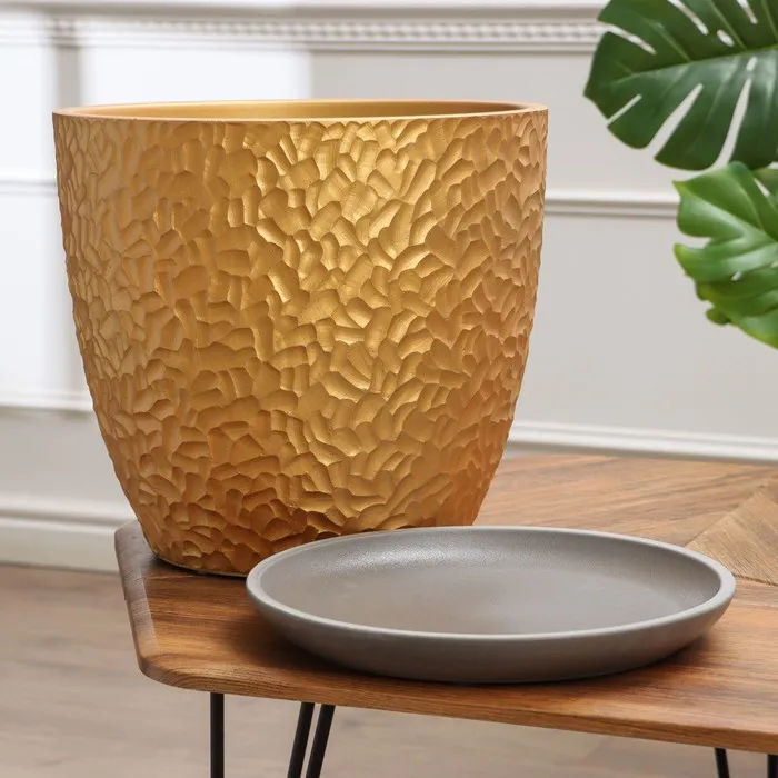Горшок для цветов «Манго золото бутон №8», с поддоном, 22 л, бетон, серо-золотой — Характеристики