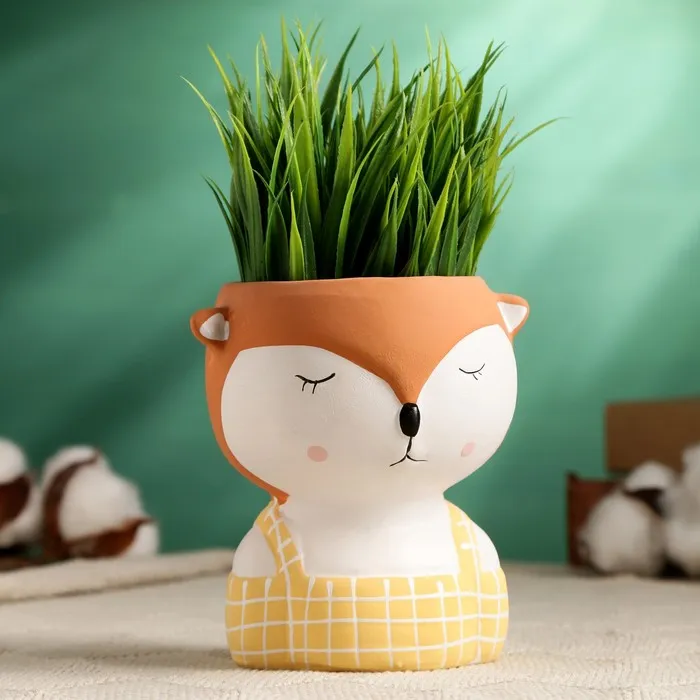 Горшок для цветов «Милая Лисичка в жёлтом комбинезоне» керамический, 330 мл, 6×11 см — Характеристики