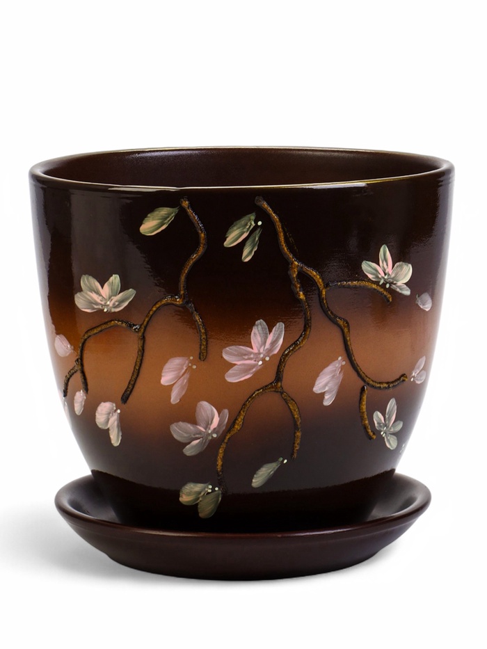 Горшок для цветов «Миндаль», 5 л, d=22 см, h=22 см, керамика, с поддоном, коричневый — Характеристики