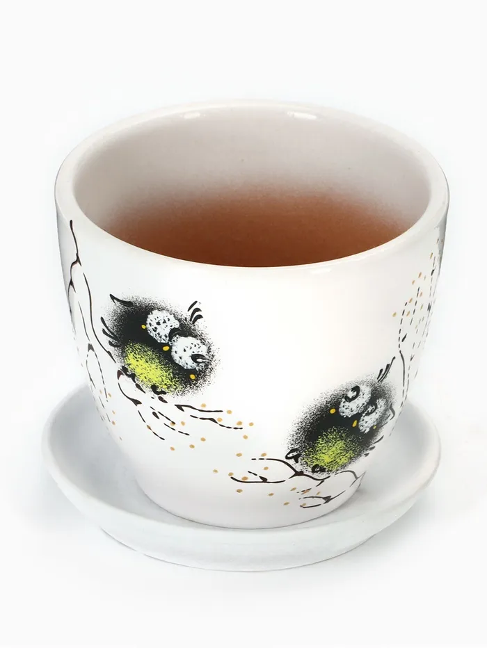 Горшок для цветов «Птички», керамический, с поддоном, 1 л, белый — Характеристики