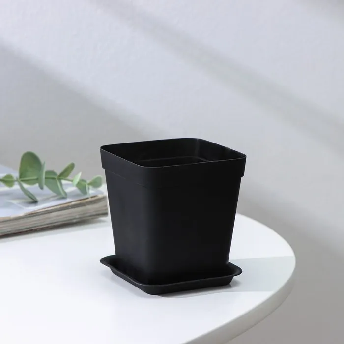 Горшок для цветов с поддоном, 7×7×7.5 см, 250 мл, пластиковый, МИКС — Характеристики