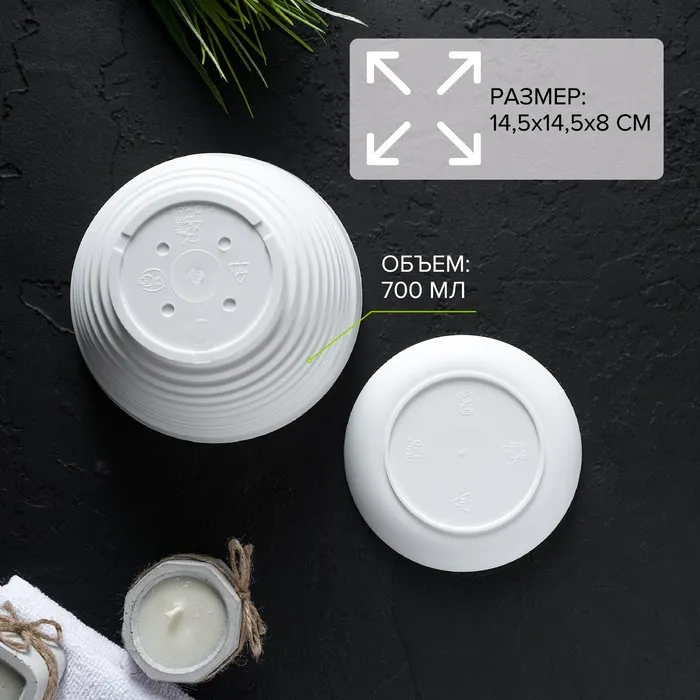 Горшок для цветов с поддоном «Алиса», 700 мл, d=15 см, h=8 см, пластиковый, белый — Характеристики