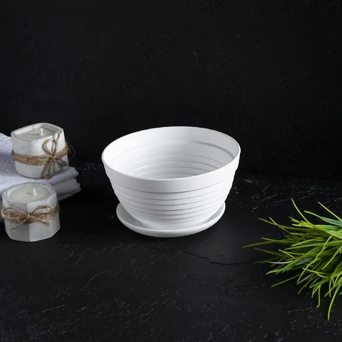 Горшок для цветов с поддоном «Алиса», 700 мл, d=15 см, h=8 см, пластиковый, белый