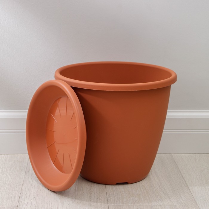 Горшок для цветов с поддоном Альтернатива «Афина», 11 л, пластиковый, коричневый