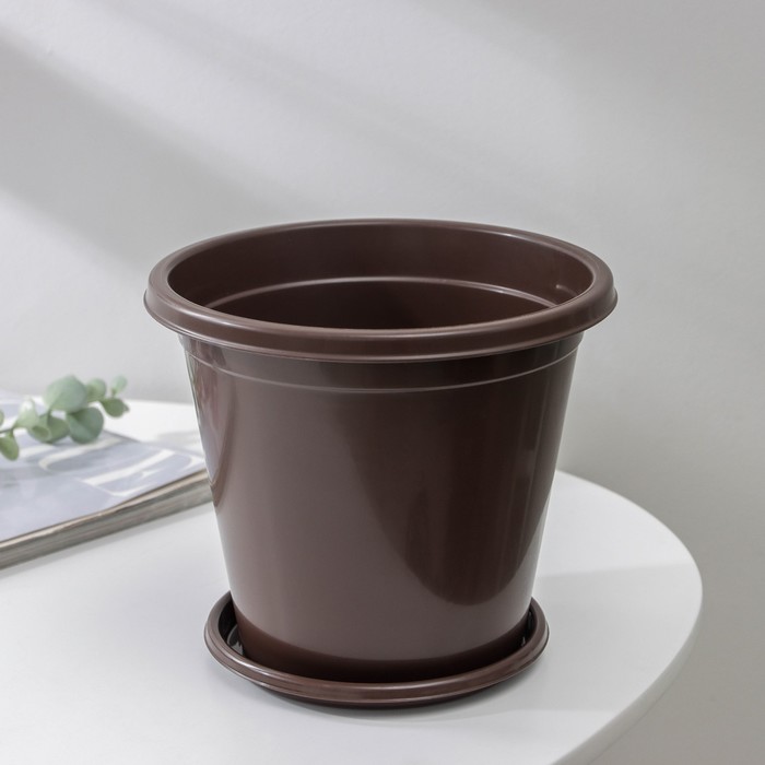 Горшок для цветов с поддоном «Альтернатива. Эконом», 2 л, пластиковый, коричневый