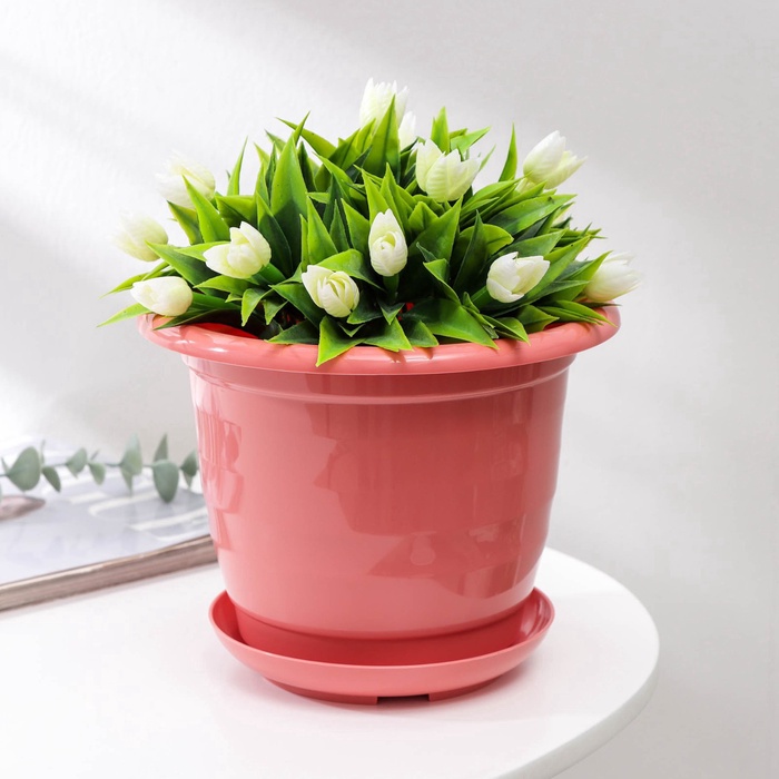 Горшок для цветов с поддоном Доляна «Арена», 2 л, пластиковый цвет коралловый — Характеристики