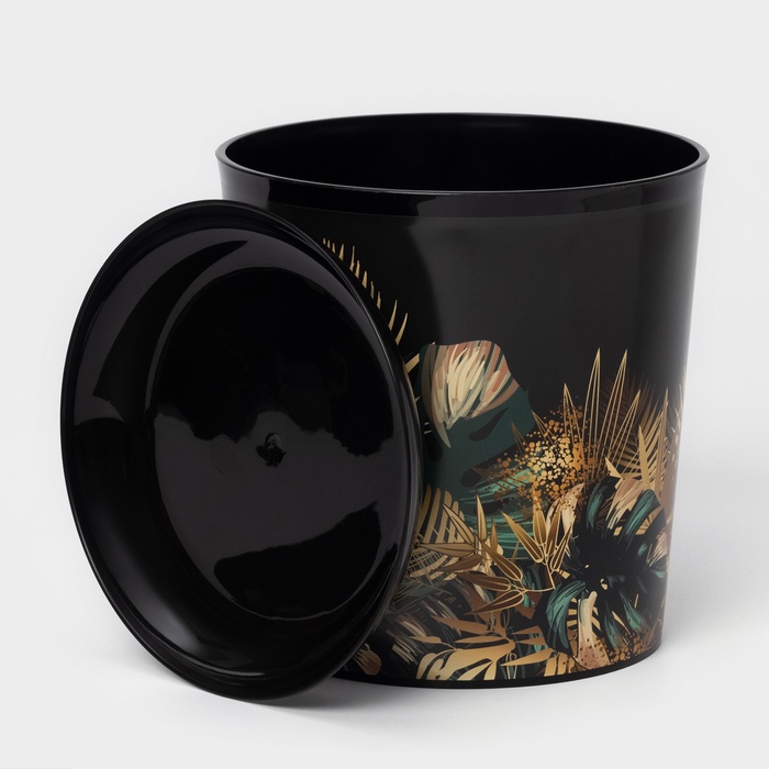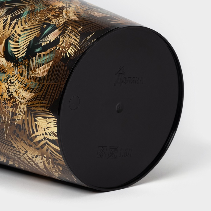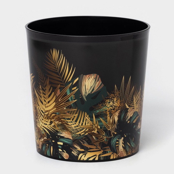 Горшок для цветов с поддоном Доляна «Голди. Листья», 1.6 л, d=14 см, h=15.5 см, пластиковый, цвет чёрный — Характеристики