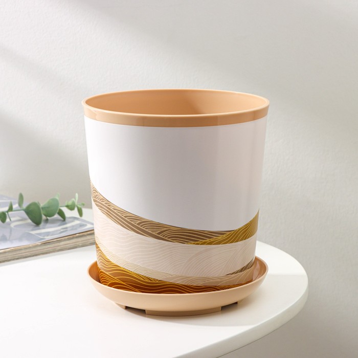 Горшок для цветов с поддоном Доляна «Каракум. Пустошь», 1.6 л, d=14 см, h=15.5 см, пластиковый, цвет бежевый
