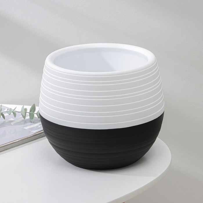 Горшок для цветов с поддоном «Дуэт», 2,5 л, пластиковый, чёрно-белый