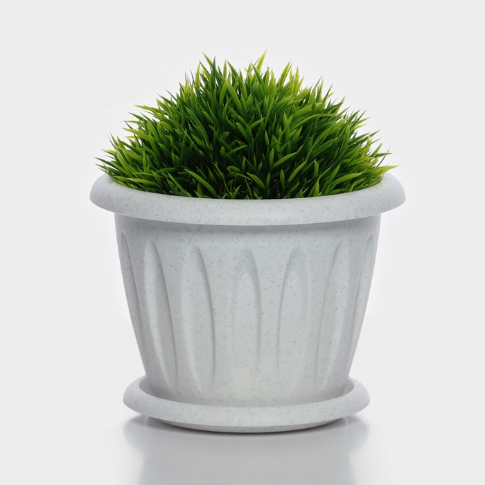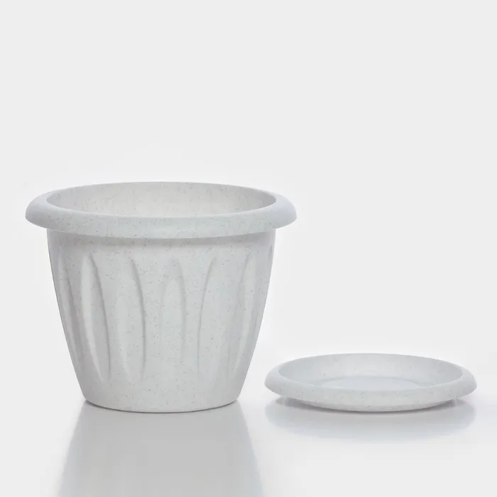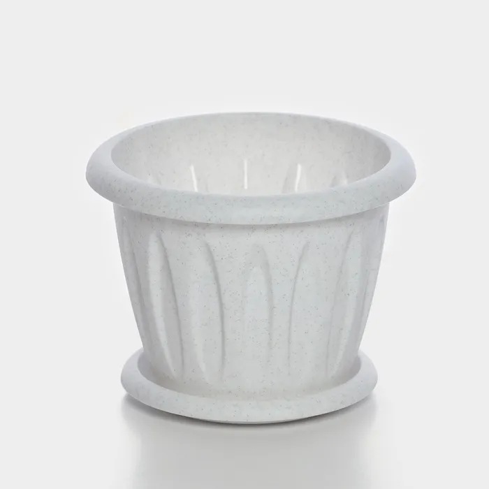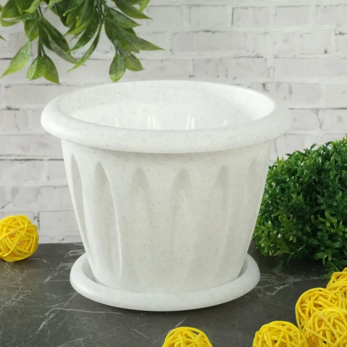 Горшок для цветов с поддоном «Фелиция», 900 мл, d=14.2 см, h=11 см, пластиковый, мраморный