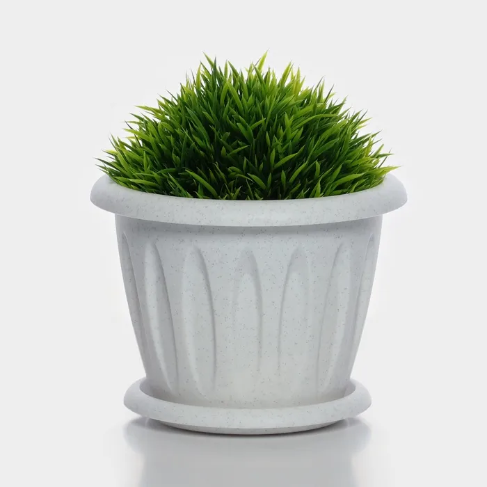 Горшок для цветов с поддоном «Фелиция», 900 мл, d=14.2 см, h=11 см, пластиковый, мраморный — Характеристики
