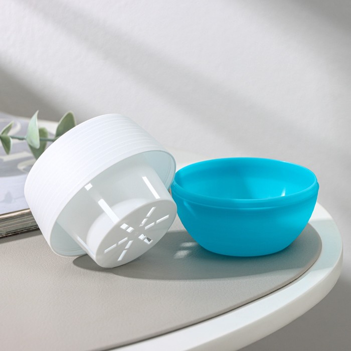 Горшок для цветов с поддоном «Япония», 125 мл, d=8 см, h=6.5 см, белый-бирюзовый