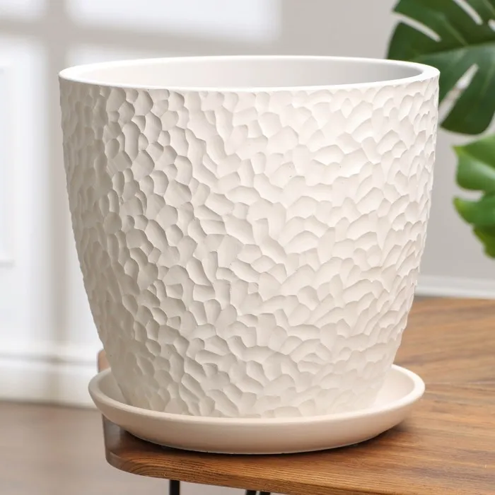 Горшок для цветов с поддоном «Камешки», 5 л, пластиковый, белый